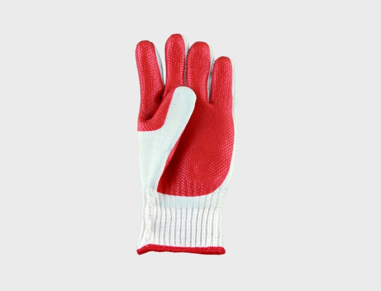 • Luva de segurança, tricotada com fios de algodão, acrílico e poliamida, revestida com látex natural vulcanizado antiderrapante face palmar e pontas dos dedos;