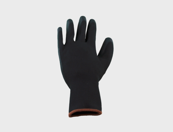 TAMANHOS: PP AO XG CARACTERÍSTICAS: • Luva de segurança, tricotada com fios de poliamida, sem costura, revestida na palma, face palmar e pontas dos dedos com poliuretano, punho com elastano, formato anatômico.