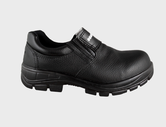 Sapato de elástico confeccionado em couro relax na cor preta ou branco. Gáspea inteira e acolchoada. Fechamento com sistema calce rápido, com elásticos laterais de trama dupla, recoberto em laminado sintético. Totalmente forrado em tecido. Forro da gáspea em não tecido. Cano acolchoado com espuma 10 mm. Costuras simples e duplas, feitas com linha de nylon de alta tenacidade. Contraforte em material termoconformado, totalmente recoberto com forro avesso em não tecido. Palmilha de montagem costurada em sistema strobel. A palmilha higiênica é antibacteriana e removível.